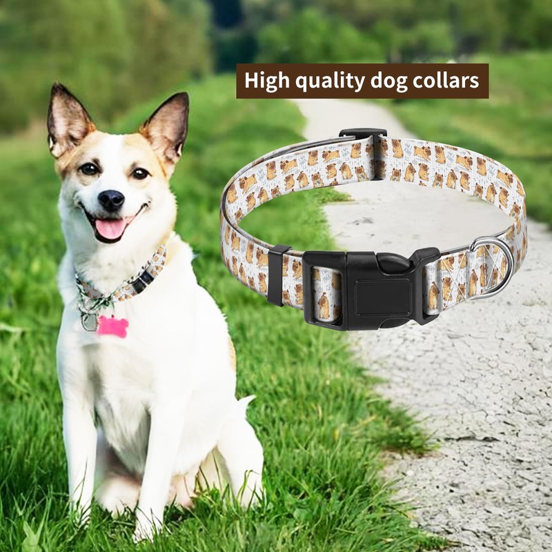This adjustable dog collar is made from durable polyester, cute and designed for medium to large dogs. It features a quick-release buckle for easy use and a comfortable fit for daily wear
