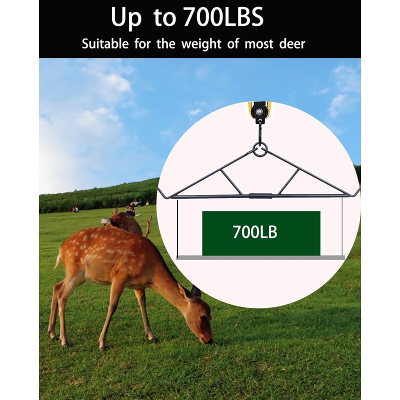- RATE to 700LBS - Thanks to its reinforced structure, the gambrel game pulley has a larger load-bearing capacity allows hunters to confidently handle heavier game without worrying about the hoist's load capacity