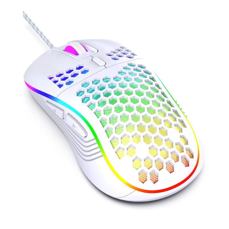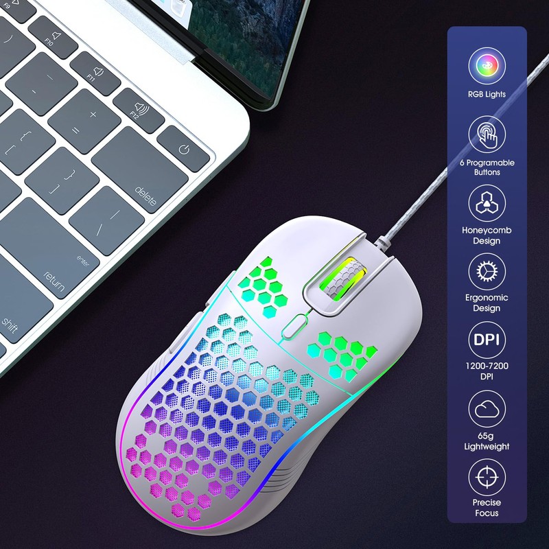 JYCSTE Wired gaming mouse, RGB backlighting and 7200 adjustable DPI, ergonomic and lightweight USB computer mouse with high-precision sensor for Windows PC & laptop gamers (White)