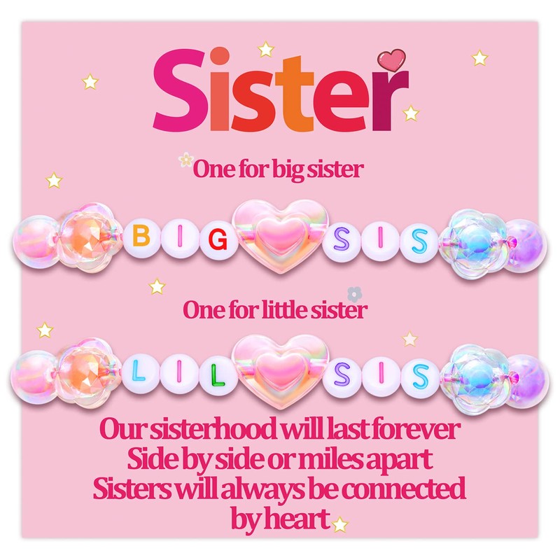 - Meaningful Big Sister and Little Sister Bracelets: Here are two colorful bead bracelets, one for big sister, one for little sister. It is very meaningful to have a sister bracelet that belongs to only the two of you, and it can replace your sister to accompany you when she is not with you.