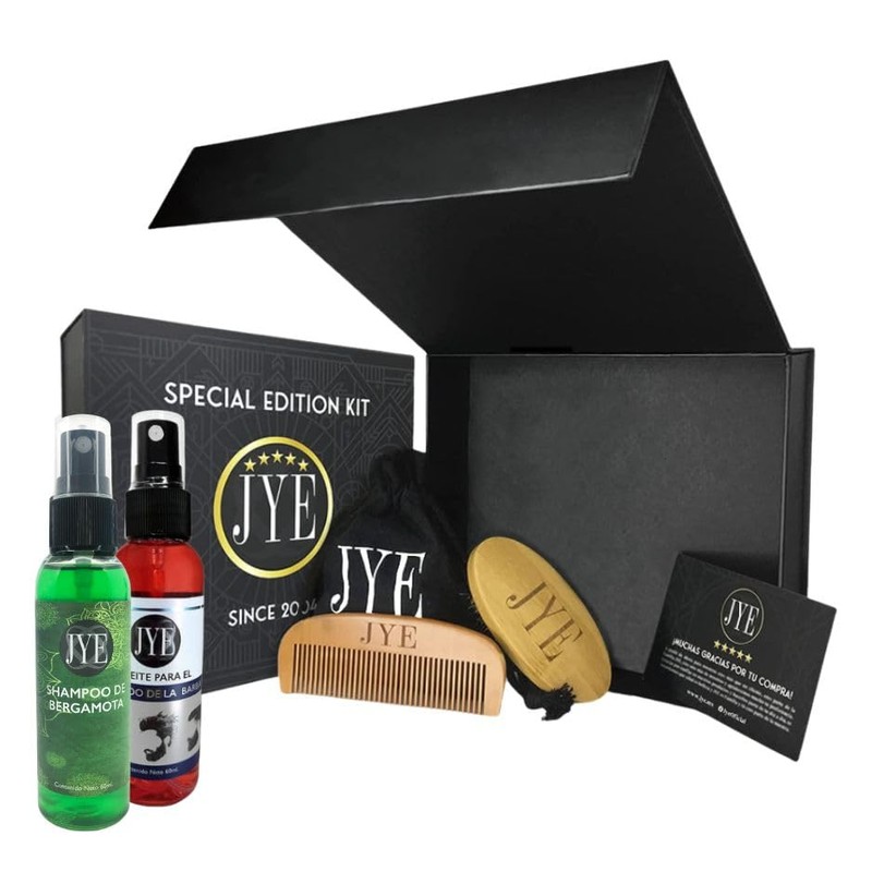JYE Kit Cuidado de Barba y Bigote: Aceite de Hidratación, Shampoo de Bergamota, Piene y Cepillo Edición Especial