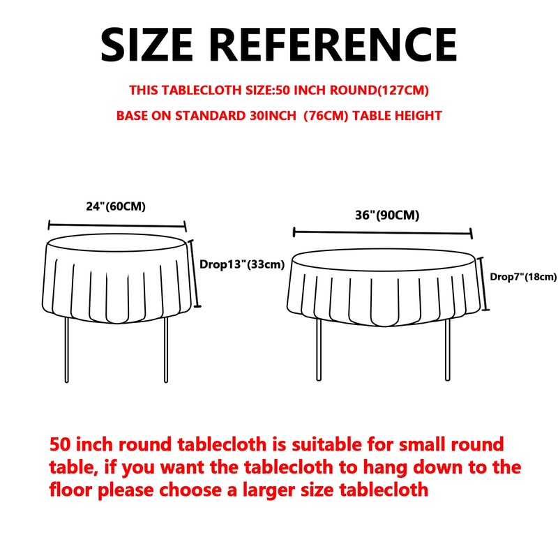 - About Size:All size is refer to the tablecloth size,we recommend choosing a tablecloth that is at least 30 inches larger than your table, if you are not sure, you can contact our professional customer service for help