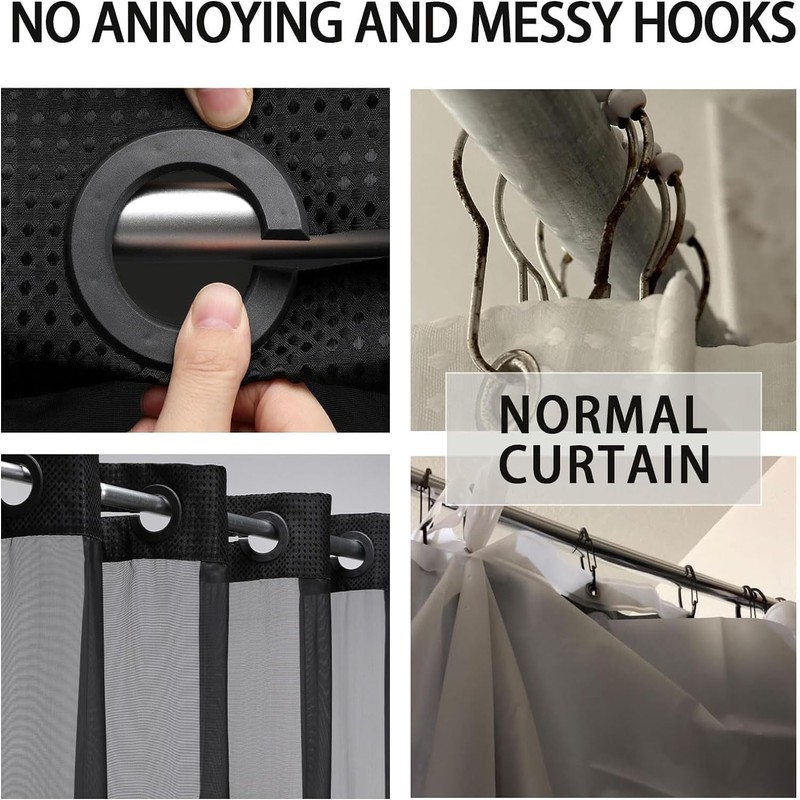- 【Ringless Shower Curtain】This shower curtain designs with High Quality Flex On Rings, with no hooks features an innovative "open ring" that allows for easy hanging and hassle-free installation. No need to remove the shower rod or purchase additional hooks.