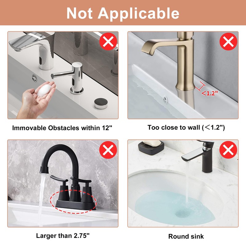 • Measure Before Purchasing: To ensure a proper fit, Make sure there are no obstacles within 12 inches on either side of the faucet and at least 1.2 inches from the back wall. The diameter of kitchen sink splash guard should be less than 2.75 inches, or may not lie flat. Suitable for most sinks, except those that have curved rims, built-in filters, or hand soap dispensers.