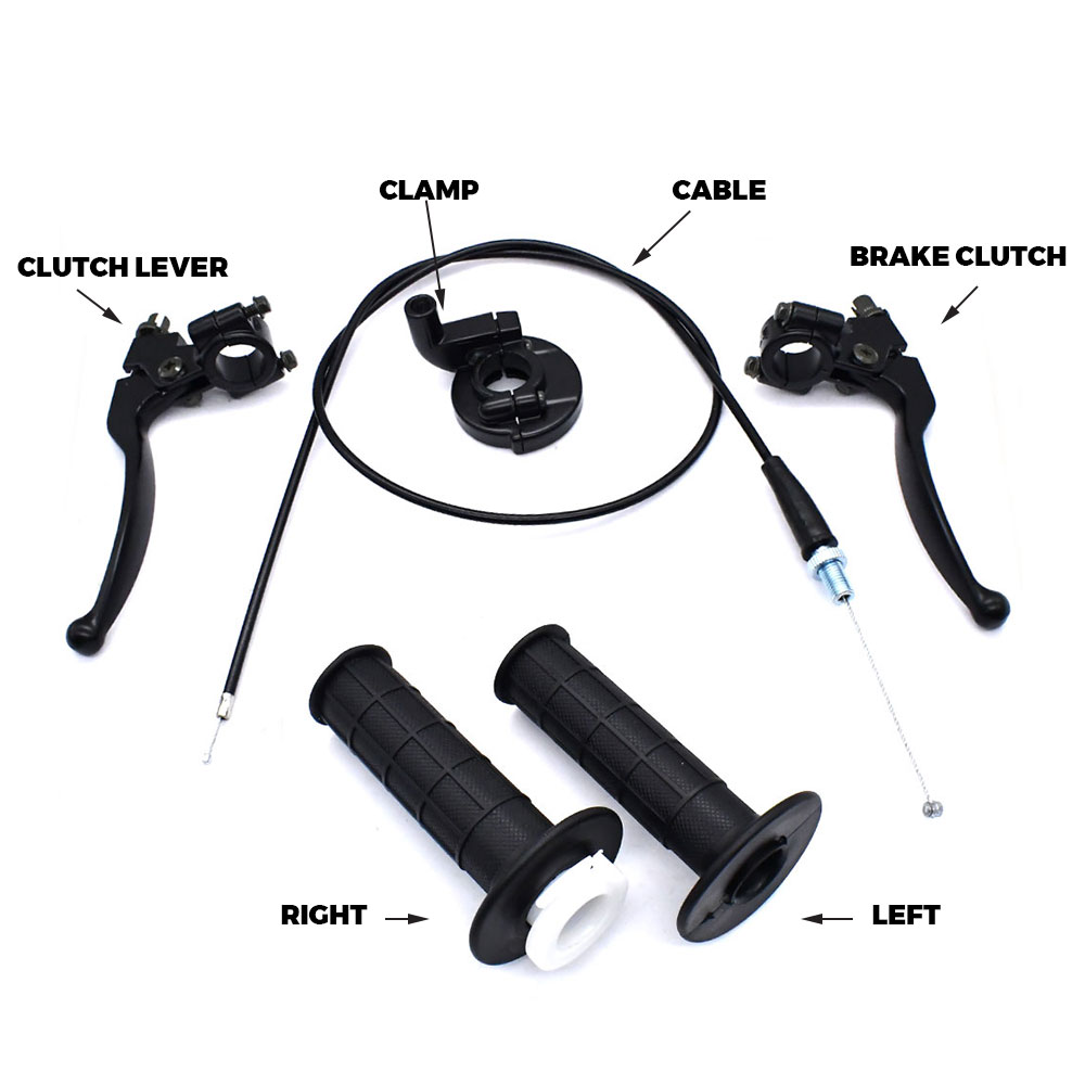 - 7/8"Handlebar, Brake Lever Cable Throttle Handle Grip, with Cable Motor Bike Baja Mini Bike 196cc 200cc 5.5hp 6.5hp motorized bicycle engine motorized, 2 stroke handlebar Grips Throttle accelerator genuine motor 125cc twist parts 50 inch pocket handlebar. Motorcycle Throttle Brake Clutch lever, Crf 70 brake cable, 150cc brake and clutch cable twist, 50cc baja dirt bike brake handle,kx 110 Throttle cable,Throttle 125cc dirt bike.