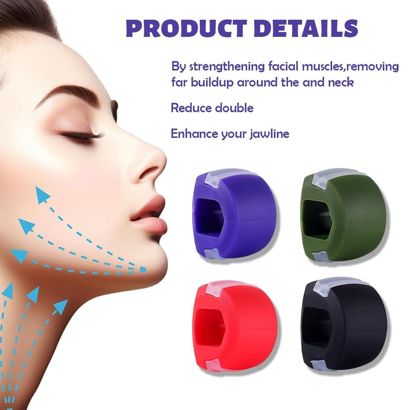 JYNVO 4-teiliger Kiefertrainer, Kieferübung, Kiefer-Gesichtsgymnastikball, Doppelkinn-Übungsgerät, hilft bei der Stärkung der Kieferlinie, Kieferübungsgerät für Männer und Frauen