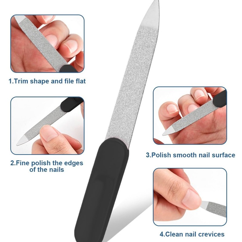• HOCHWERTIGE MATERIALIEN: Unser nagel feilen besteht aus einer Kombination aus strapazierfähigem Kunststoff und hochwertigem Stahl und ist daher besonders langlebig. Der rutschfeste Griff ist ergonomisch geformt und sorgt für einen bequemen und sicheren Halt, sodass Sie beim Feilen und Polieren Ihrer Nägel präzise Kontrolle haben. Ganz gleich, ob Sie natürliche Nägel oder Kunstnägel haben, sodass diese Nagelfeilen ein Muss für Ihr Nagelpflege-Set sind.
