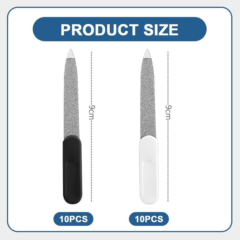 JYNXOR 20 Stück Schwert Nagelfeile Metall Nagelfeile für Naturnägel Profi Maniküre Nagelfeilen Set Doppelseitige Nagelfeile mit rutschfestem Griff Fingernägel Zehennagel, Schwarz/Weiss