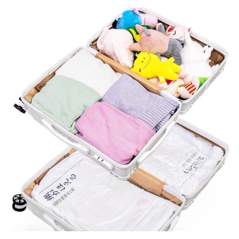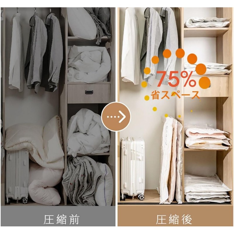 - 【Multiple Sizes】For clothes 19.7 x 31.5 inches (50 x 80 cm): Can hold 3 duvet or down jackets or 20 shirts. It has a wide range of uses to store clothing, comforters, and other daily items such as down jackets, king-sized plush toys. In addition, the included manual suction pump allows you to deflate easily and smartly compress and organize stuffed animals and bulky adult clothes from living alone to multiple households. The included pump is lightweight and intuitive to operate, minimizing storage effort and maximizing space saving