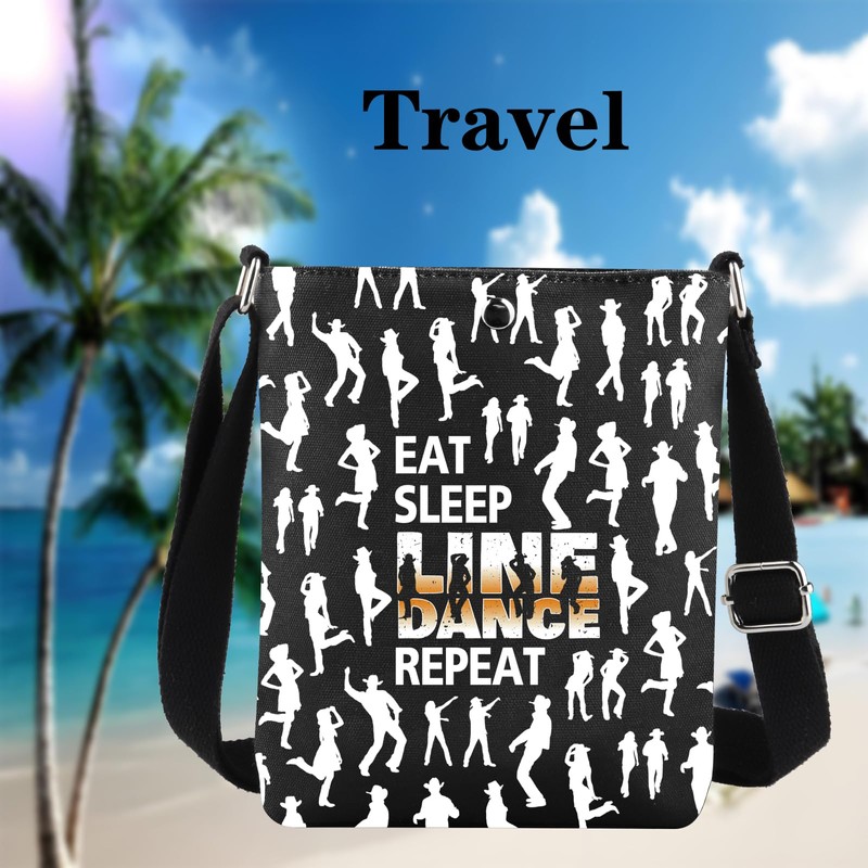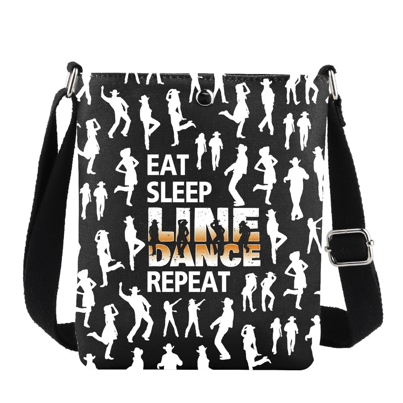 JYTAPP Line Dance Inspired Crossbody Bag Eat Sleep Line Dance Repeat Line Dancer Bag Fan Line Dancing Bag (Black)