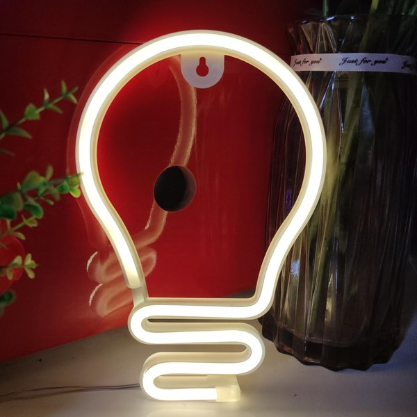 JYWJ Bulb Neon Light,USB or 3-AA Battery Powered Neon Signs,LED Desktop Wall Decoration,Various Parties,Decoration Of Business Premises (Warm)