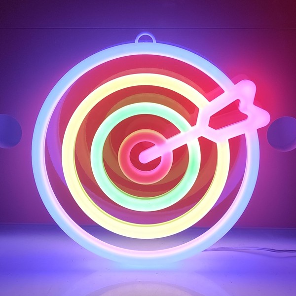 JYWJ Double Sided Neon Signs,USB or 3-AA Battery Powered Neon Light,LED Desktop Wall Decoration,Various Parties,Decoration Of Business Premises(Dartboard)