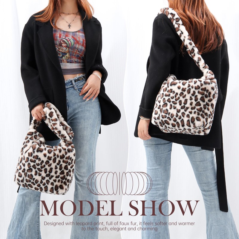 - FASHION DESIGN The fluffy tote bags are closed at the top with a zip. Designed with leopard print, full of faux fur, feels softer and warmer, elegant and charming. The shoulder strap cannot be removed, but you can adjust the length with the drawstring.