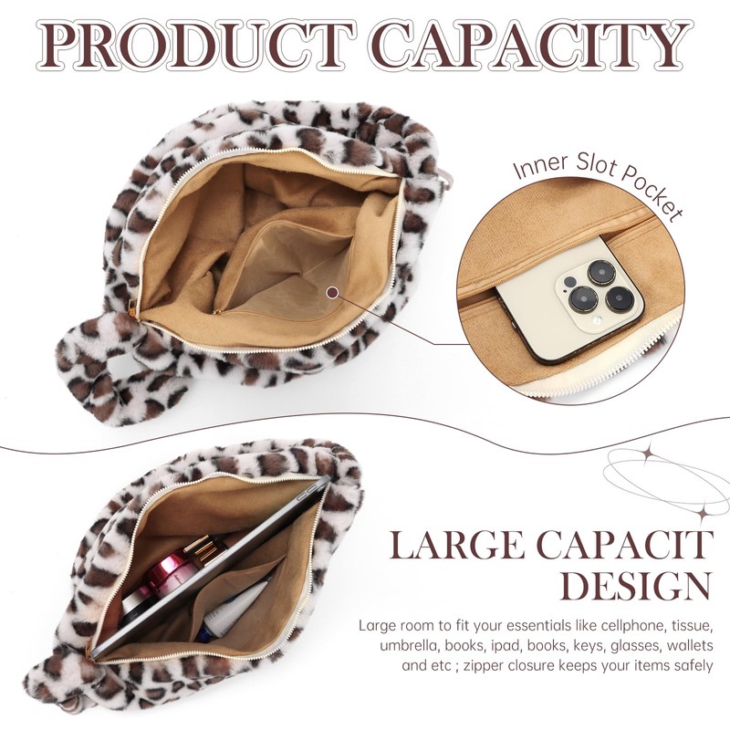 - High Quality Material Our leopard print crossbody bag is made of plush furry fabric, feels softer, lightweight and durable in cold winter, and keeps you warm in cold winter.