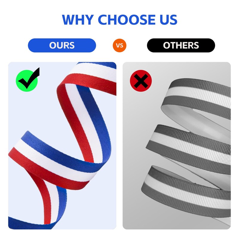 - 【Wide Application】Red white and blue ribbon can be used for gift wrapping or decorating bouquets,Clothes, Wrists, Hair, Balloons, Cakes, Crafts and more. Perfect for weddings, Birthday parties, Street parties, Coronation parties and more.