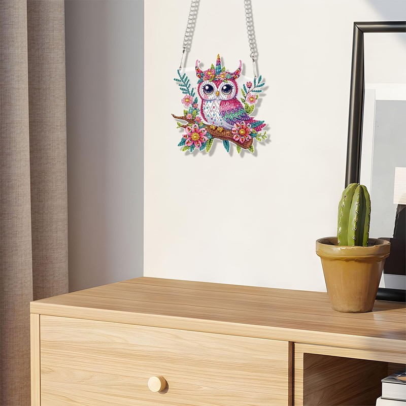 JZHYOAN Diamond Art Gem Suncatchers Acrylic Mosaic Window Ornament DIY Owl Hanging Diamond Painting Craft Pendant Window Wind Chime Hanging Pendant for Adult Office Room Family Decoration
