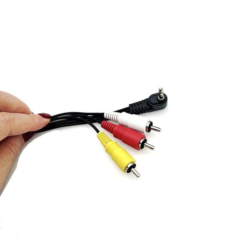 - This 3.5mm to RCA cable is equipped with a 3.5mm male connector on one end, which plugs into the camcorder's 3.5mm TRRS port, and three RCA male connectors (yellow for video signal, red and white for stereo audio) on the other end. This cable maes it easy to connect cameras or other AV devices to TVs, monitors, or audio systems.