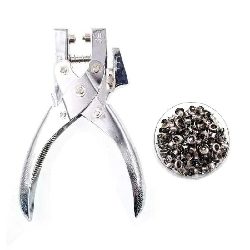 - Package contains: 1 kit of hole punch and eyelet pliers + 200 great quality eyelets. This eyelet hole puncher are super easy to use, make holes in seconds without difficult.