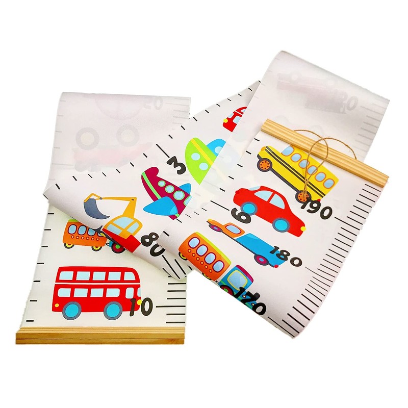 - This kids height wall chart cars is made of wood and canvas cloth, thick, durable, no smell. Two kinds of units of length: feet and centimeter.