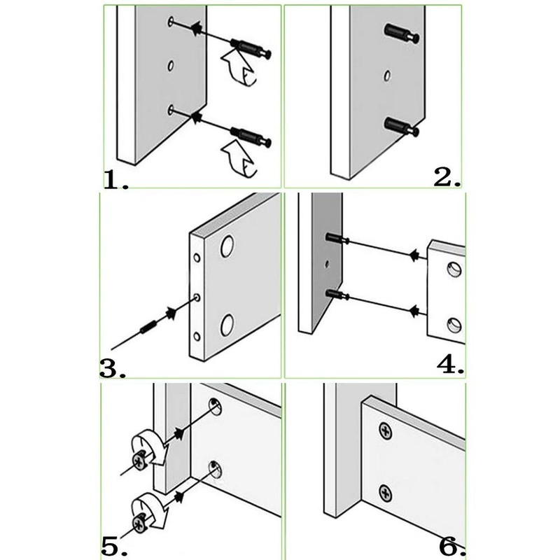 - Furniture connecting the cam screw nut must be used with dowel screws.