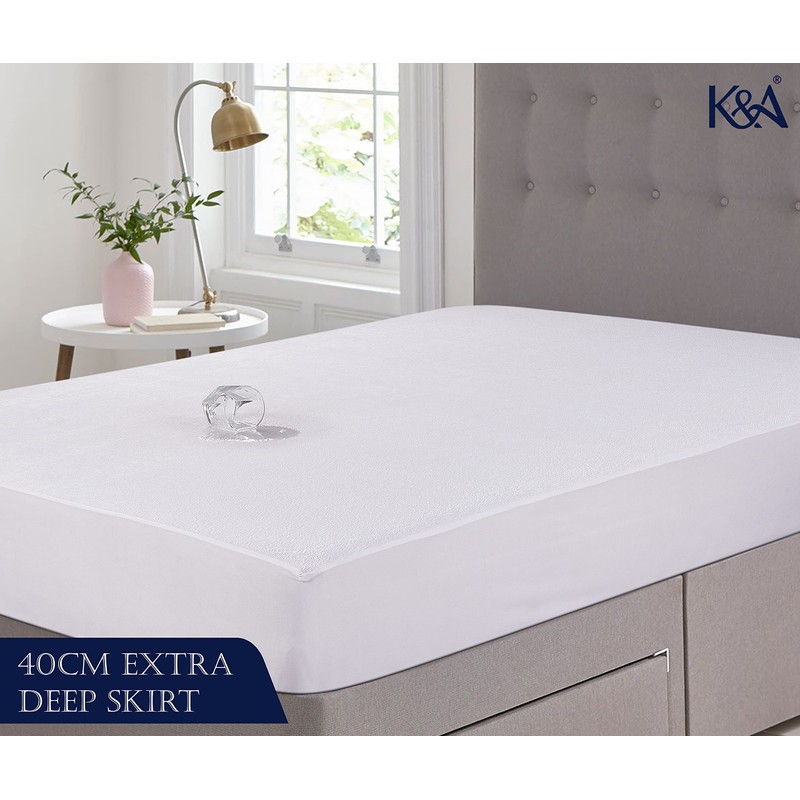 K&A® Terry Waterproof Mattress Protector | Soft Terry Towel Mattress Topper | Anti Allergy, Noiseless and Breathable | 40 cm Extra Deep Box | Fitted Sheet Style Mattress Cover | King 150x200 cm