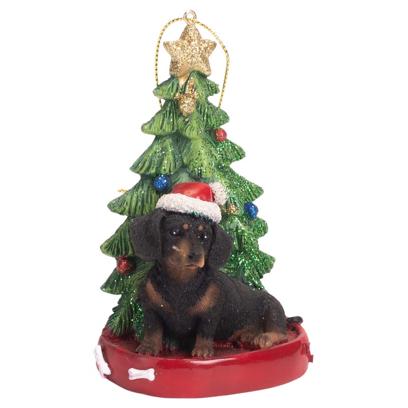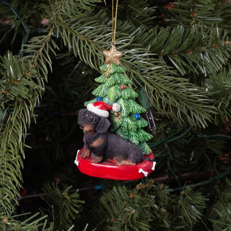 K. Adler Dachshund Black 4 Inch Santa Dog Resin Christmas Ornament