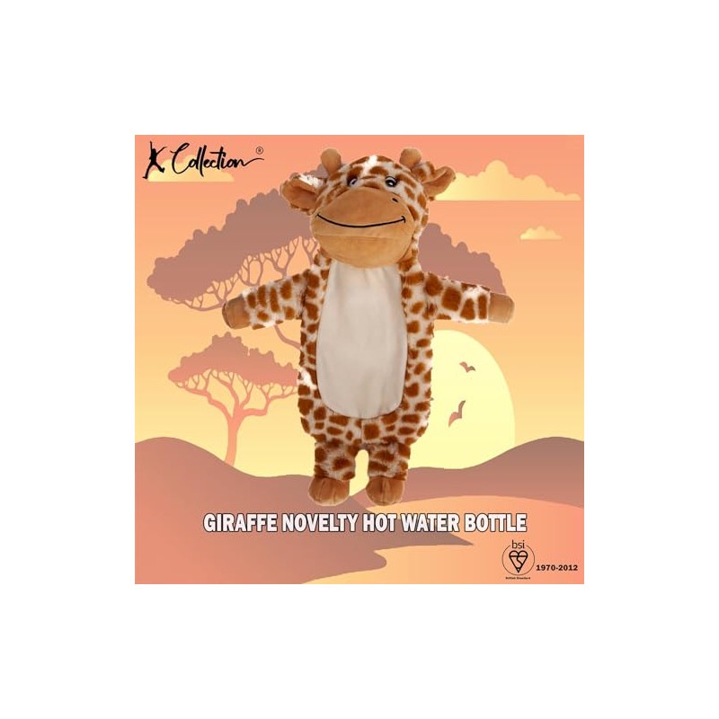 - NOVELTY GIRAFFE HWB: Embrace Warmth with K Collection's Hot Water Bottle, Dressed in a Plush Giraffe Costume! Our hot water bottle, nestled within an irresistibly soft giraffe-themed cover, boasts lifelike features that bring a touch of safari charm to your cozy moments. A delightful addition to your relaxation ritual, infusing a playful spirit into your downtime. Experience the perfect blend of comfort and tall-necked cuteness with our unique giraffe-themed hot water bottle