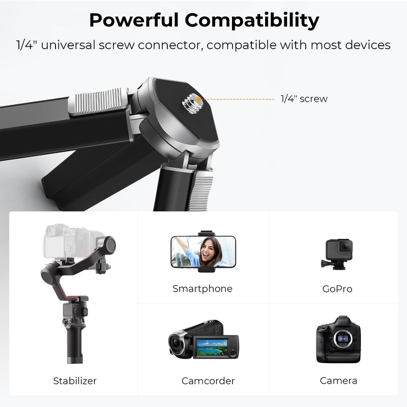 - Broad compatibility: The top of the tripod has a 1/4 inch interface, support 20 kg load bearing, suitable for cameras, cell phones, fill light, stabilizers and other equipment shooting and support.