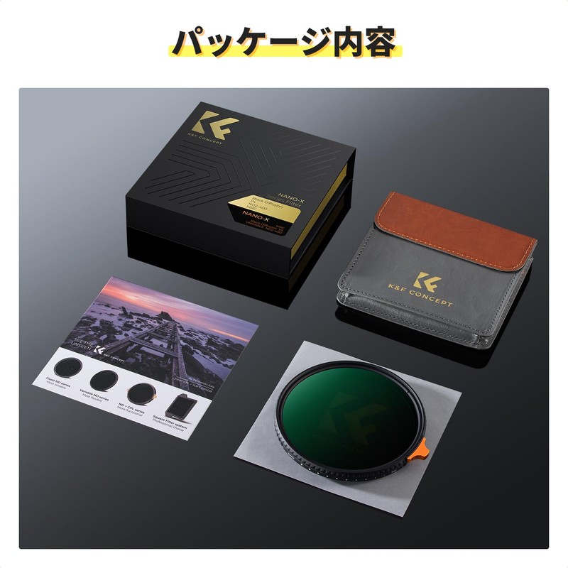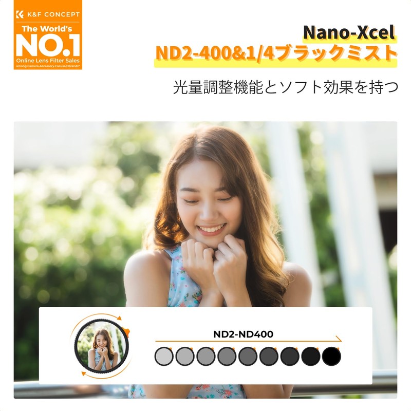 (2-in-1 Lens Filter) The 52mm ND2-400 & Black Mist, 1/4 & 2-in-1 lens filter features a ND filter with light adjustment and a soft black mist filter in one multi-function filter. The optical glass is precisely grinded and polished on both sides to ensure the stability of the molecular structure, so it does not affect the sharpness of the telephoto lens and is high-resolution.