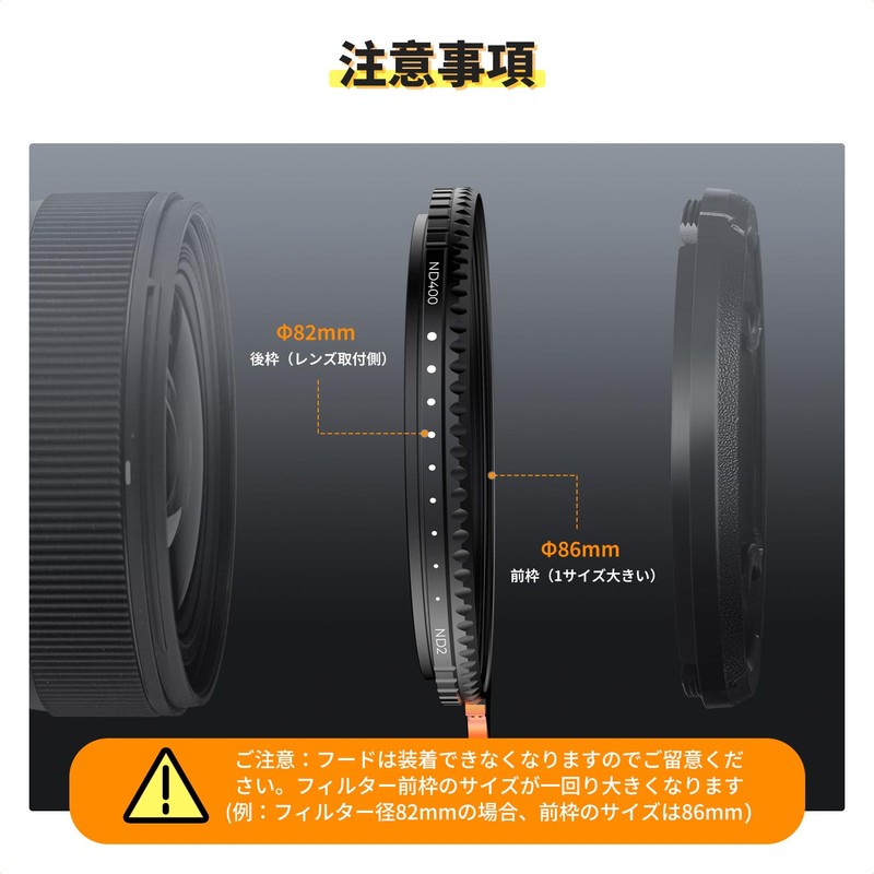 • (2-in-1 Lens Filter) The 52mm ND2-400 & Black Mist, 1/4 & 2-in-1 lens filter features a ND filter with light adjustment and a soft black mist filter in one multi-function filter. The optical glass is precisely grinded and polished on both sides to ensure the stability of the molecular structure, so it does not affect the sharpness of the telephoto lens and is high-resolution