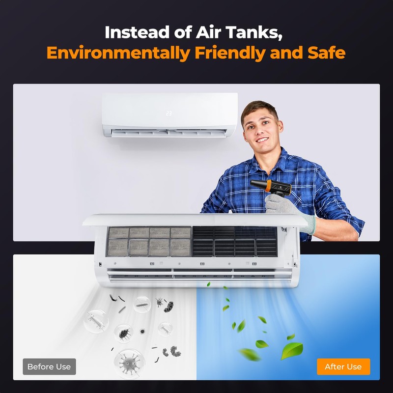 - 🔥 Upgraded Powerful Motor - K&F Compressed air duster has stronger motor efficiency❗The product adopts a three-phase Brushless Motor and has a service life of 7-10 Years. The maximum rotational speed can reach 150000RPM, the top wind speed can reach 54m/s and the wind force of up to 180G. Effortlessly clears leaves, dust in computer/AC systems, window crevice grime, plus enhances outdoor campfire ignition & cooling.