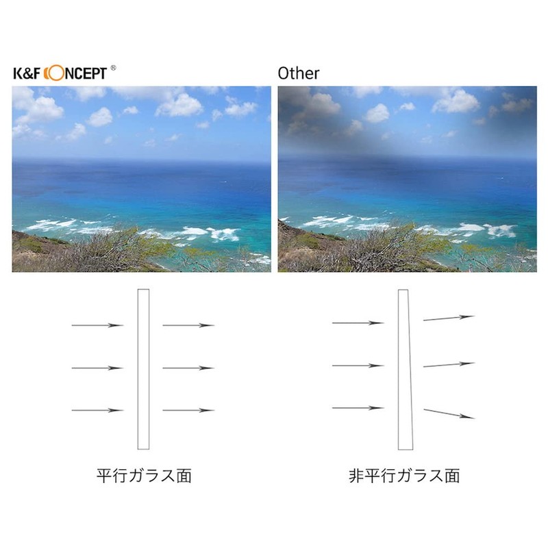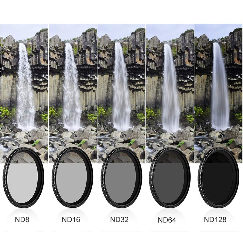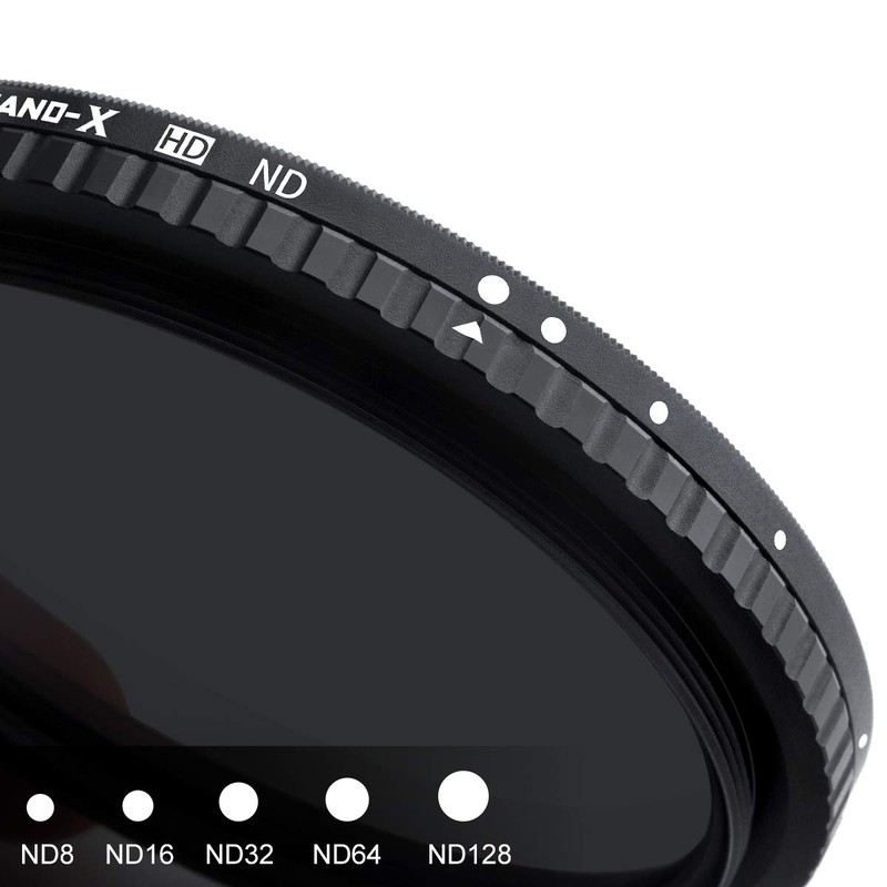 Variable (variable type) ND filter with adjustable density is a revolutionary product that rotates the front frame of the filter to adjust the amount of dimming as you like. The amount of light can be adjusted from ND2 to ND32, eliminating the hassle of replacing filters when taking pictures. In addition, the phenomenon of X-irregularity is minimized near the high concentration of variable filters.