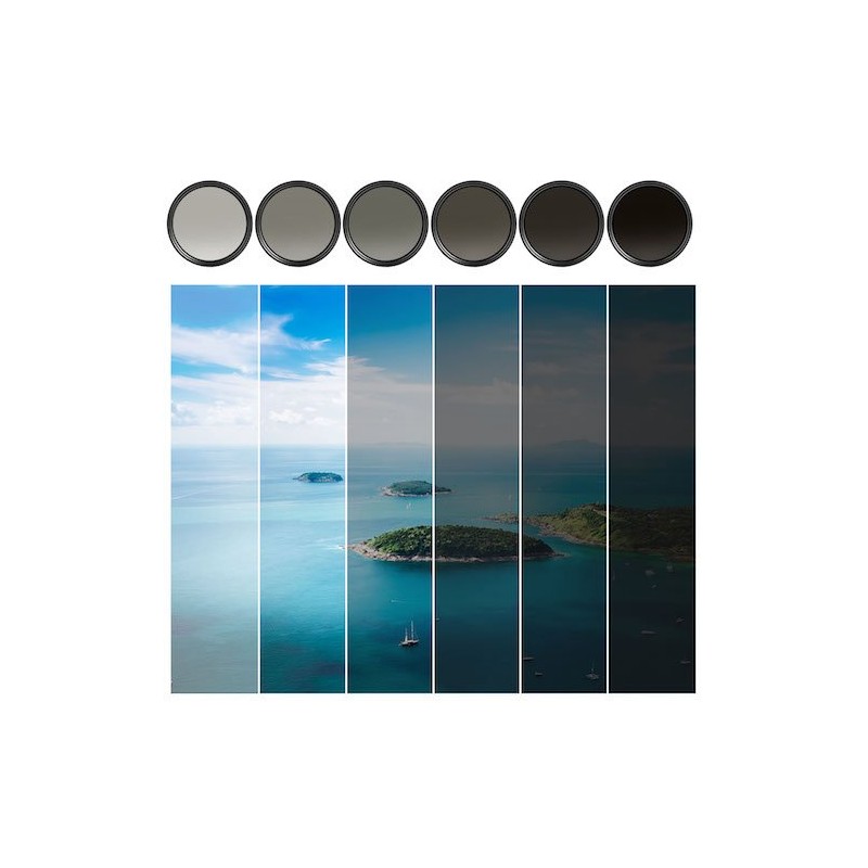 - Variable ND 2 - ND400 ND 3.2 inches (82 mm) diameter neutral filter that can be adjusted freely