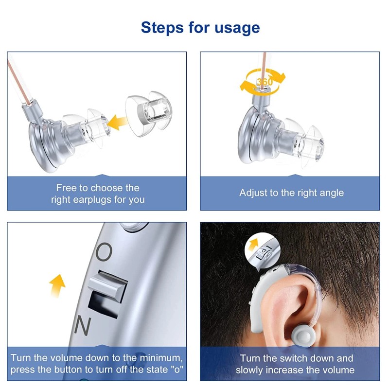 Enjoy Life with Hearing Aids:Whether you're watching TV, having conversations or enjoying music, hearing aids provide crystal clear sound amplification for you. One-button operation and multi level volume control offer more choices for seniors, allowing each person with hearing loss to find the most suitable volume.
