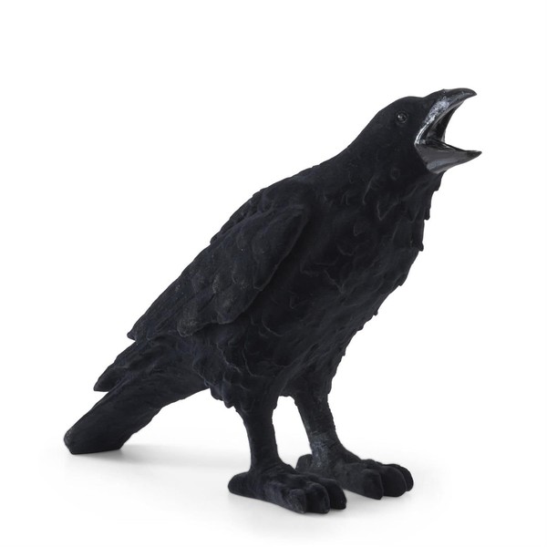 K & K Interiors Black Velvet Flocked Resin Crow 16.5" 42357C