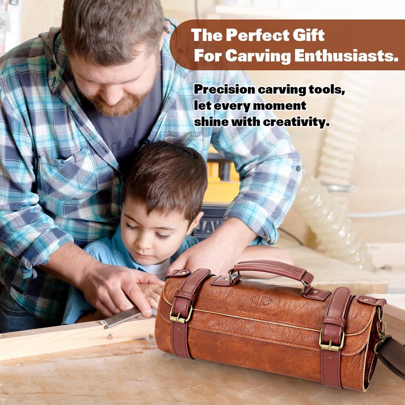 - [Exquisite Storage Bag]- All the 20pcs wood carving tools comes in a high-quality PU leather bag, with double-layer surface and portable handle and strap. Not only can it neatly organize all accessories, but it also allows for easy transportation anywhere.