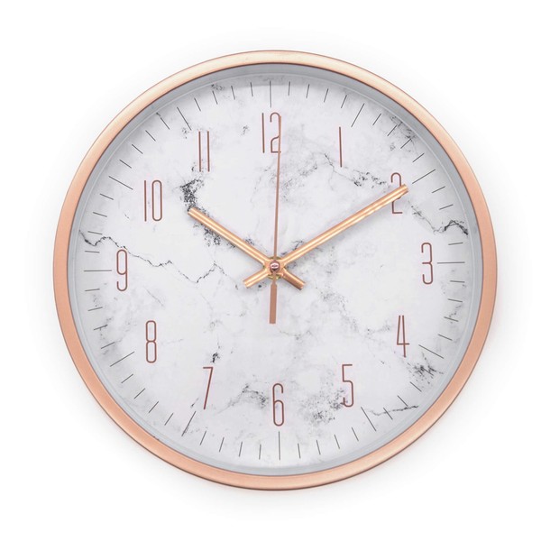 K&L Wall Art Silver Pink Wall Clock without Ticking Noises Marble Wall Clocks Modern Living Room Decoration Silent Quartz Movement (Marbled Rose Gold, Diameter 25 cm)