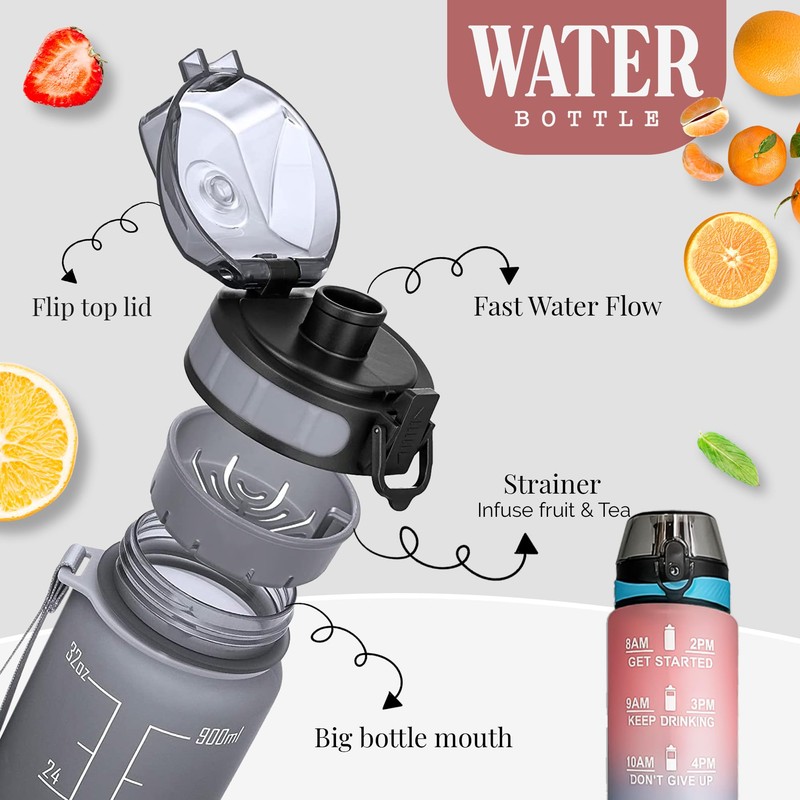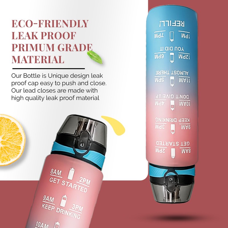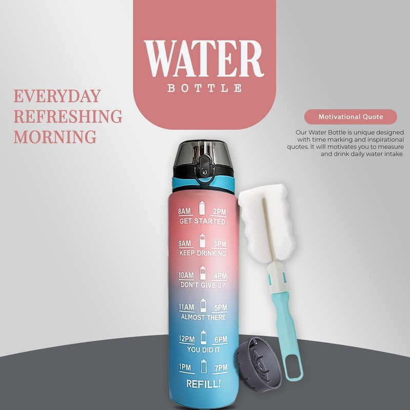 - Motivating water bottle: our 1 litre drinking bottle with time marking and motivational quotes serves as a constant reminder to drink the recommended amount of water to stay hydrated all day long