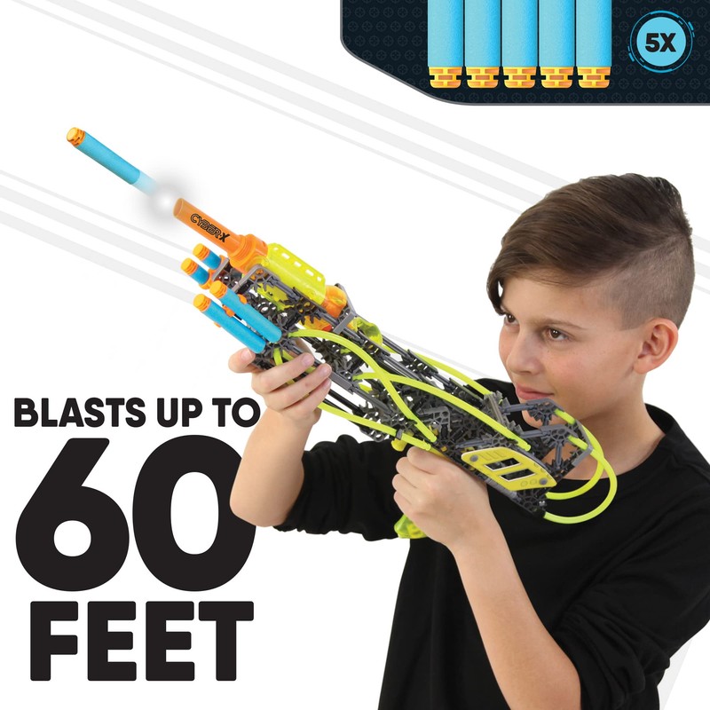 - BUILD, BATTLE, LEVEL UP! Enjoy non-stop excitement as you build your own dart blaster with the K'NEX CYBER-X C5 Neostrike! Choose from 4 available templates or create and design your own!