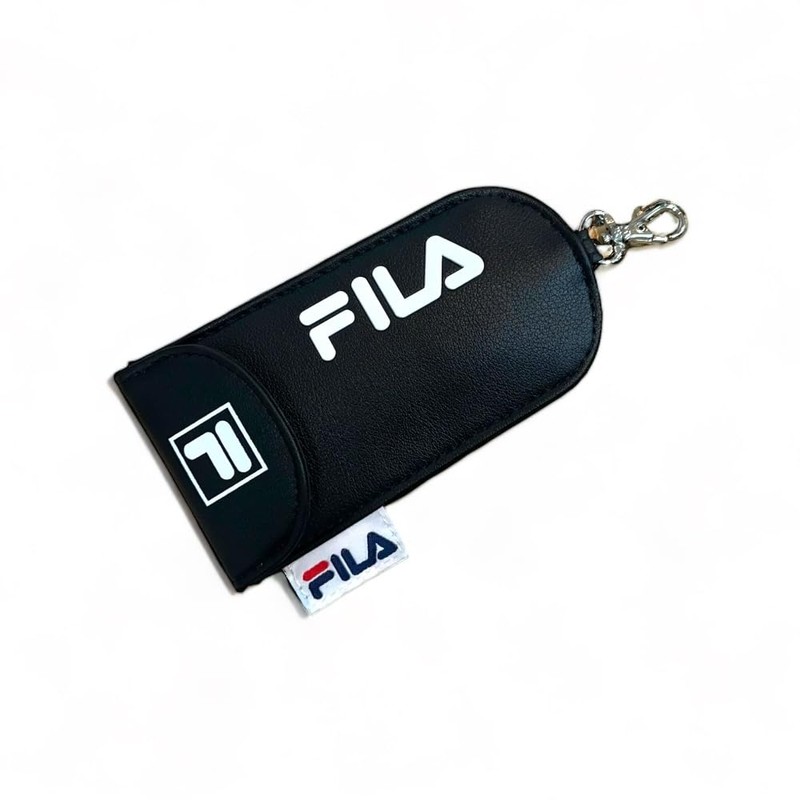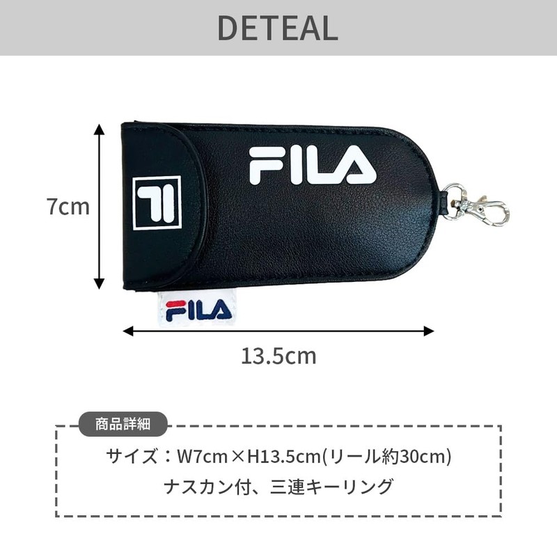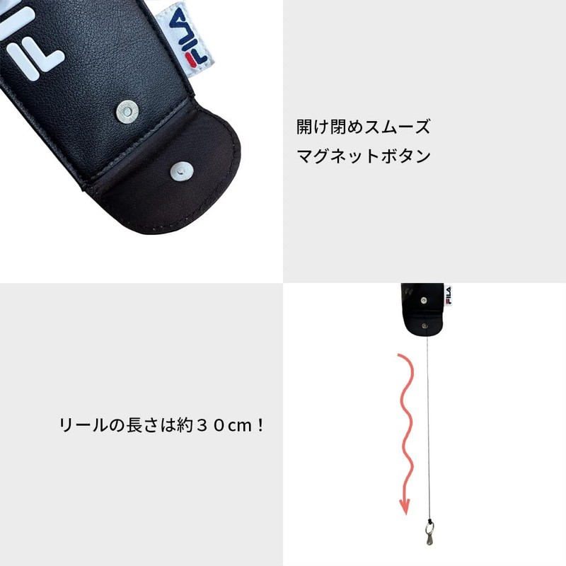 [K-PARTS] FILA School Bag Key Case with Reel for Kids, Key Case, For Boys and Girls, Fila Key Case with Reel Keycase, Stylish, Black, White, Security Cover, School Bag, Stretchable, Key Case, For