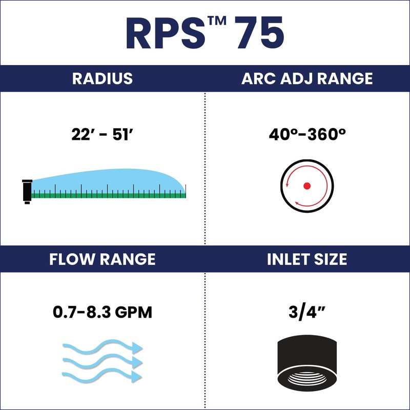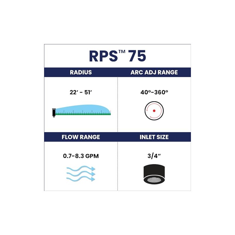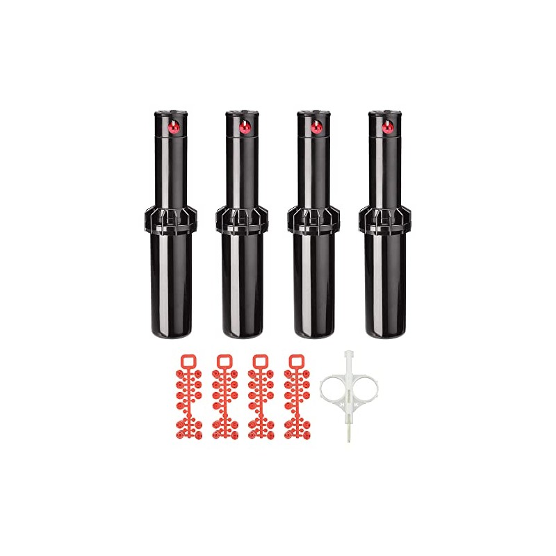 K Rain k5 3/4" Gear Drive Rotor 5" Pop-Up | 22' - 51' Spray Distance, 40° - 360° Arc Spray Pattern with Full-Circle Gear Driven Rotor | Includes Install Kit (4 Pack)