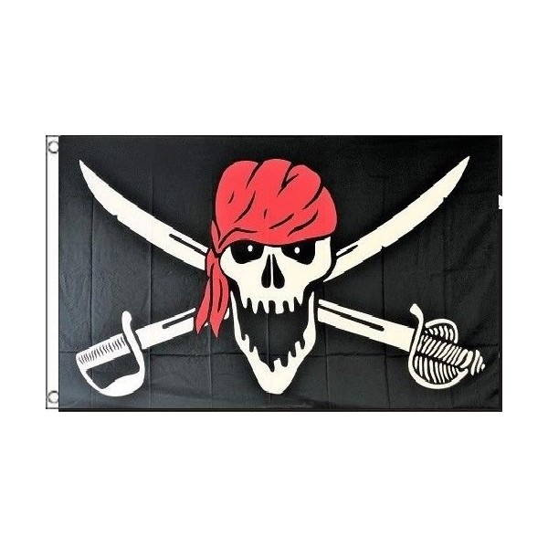 K's Novelties 3x5 Pirate Jack Rackham Scarf Red Hat Flag 5' x 3' Skull Skeleton Bones Includes 2 Flag Clips
