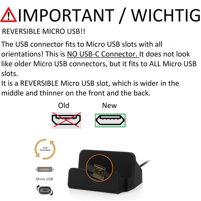 - HIGH QUALITY AND ELEGANT: The high-quality docking station is made of black plastic. It therefore looks very elegant and elegant. Thanks to the rubberised base, the table charging station does not slip.- UNIVERSAL: The station has a central micro USB port. This makes it suitable for all smartphones with a corresponding connection. Among other things, it is compatible with Umidigi A5 Pro.
