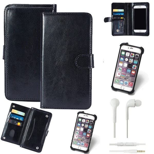K-S-Trade High-Quality & Innovative 360° Case for Energizer Power Max P551S Including Headphones Black Faux Leather Bookcase WalletCase