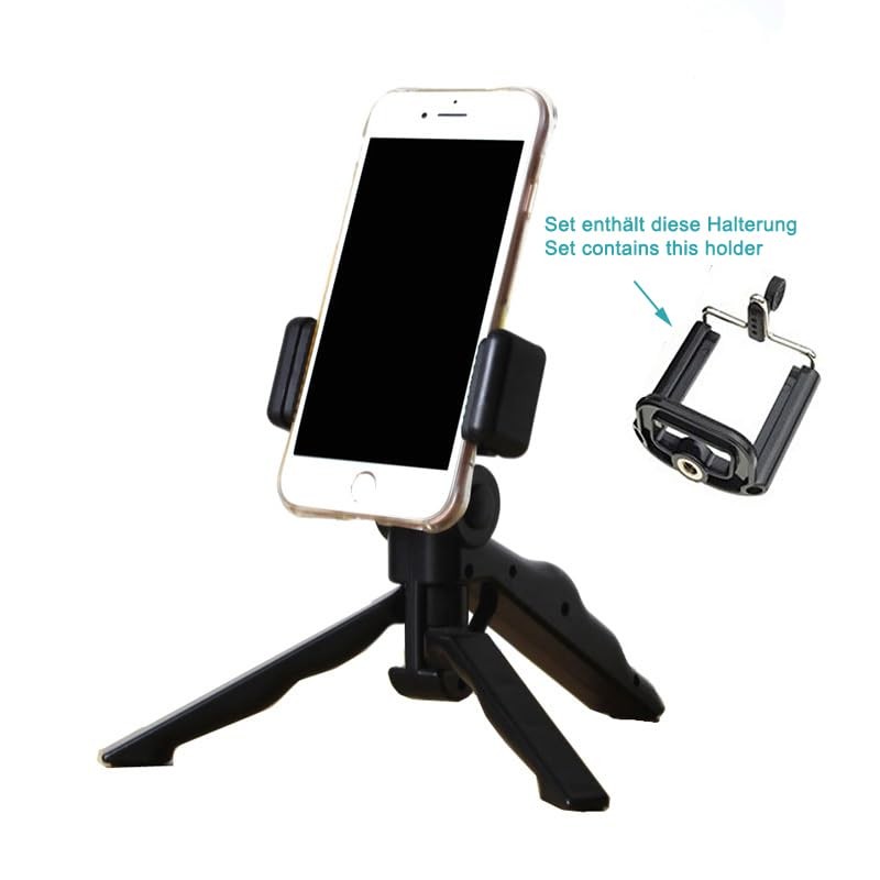 Qualitativ & Innovativ: K-S-Trade Stativ Tisch-Ständer Dreibein Handy-Stativ Ständer für Honor X70i Mini-Stativ Smartphone Tripod aus Plastik schwarz (1x)Processing Time