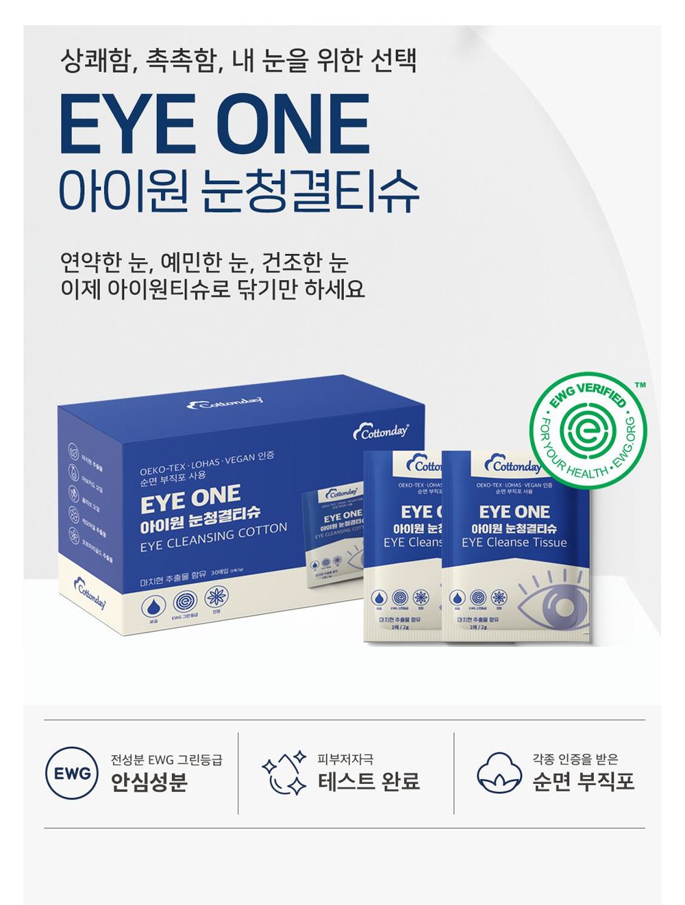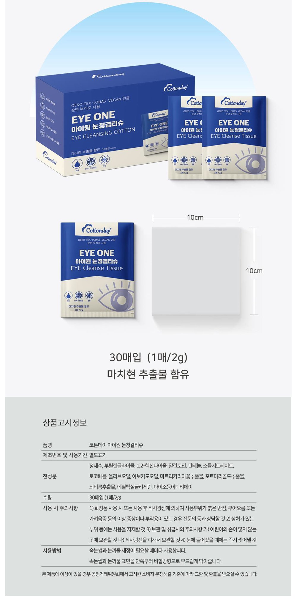 (K Solution) I-One Eye Cleansing Tissue Eyelid Cleanser, 30 sheets / (케이솔루션)아이원 눈청결티슈 눈꺼풀세정제 30매입
