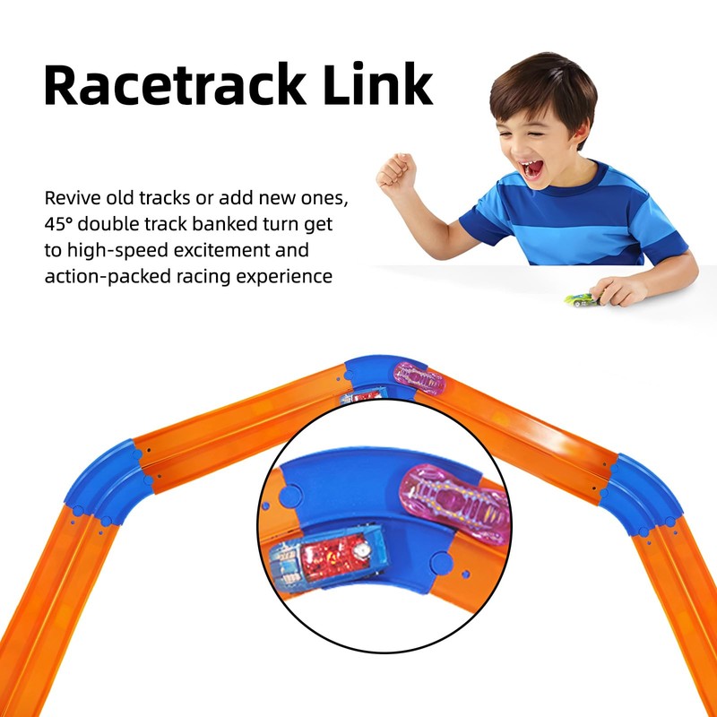 - Perfect Accessory: Transform your playtime,Revive old tracks or enhance new ones with Racetrack Connector for Hotwheels 45 degree Curved, designed to work flawlessly with your existing hot wheels tracks for an enhanced, action-packed racing experience.