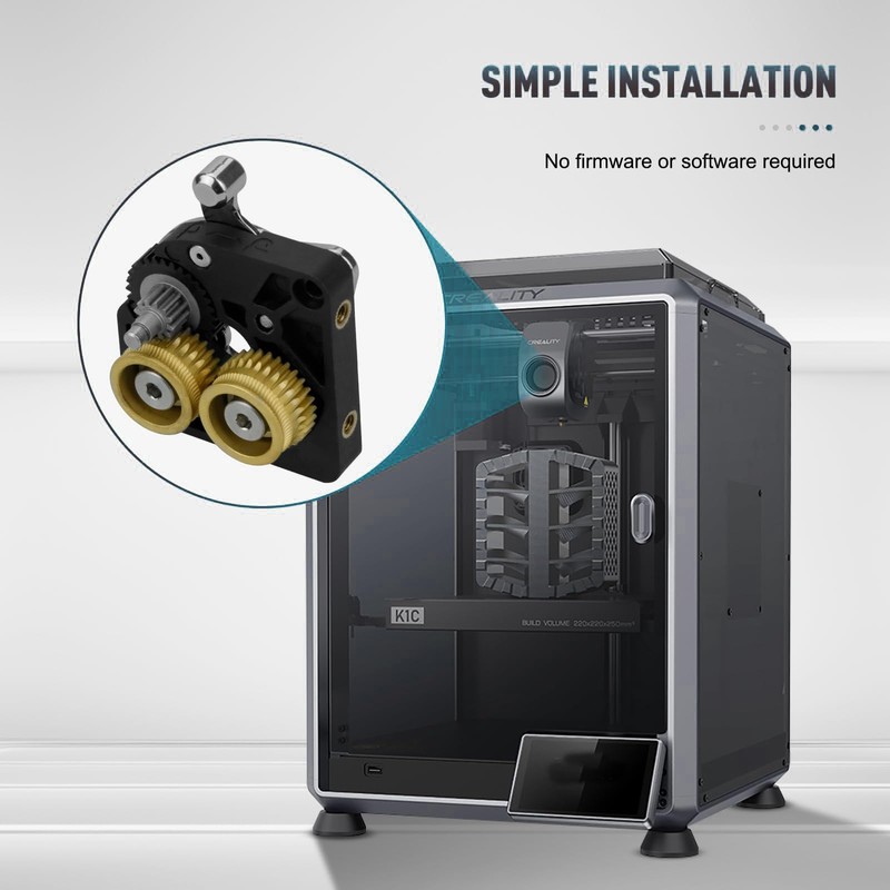 - dual gear design enhances filament extrusion performance for smoother printing, resulting in exquisitely detailed models