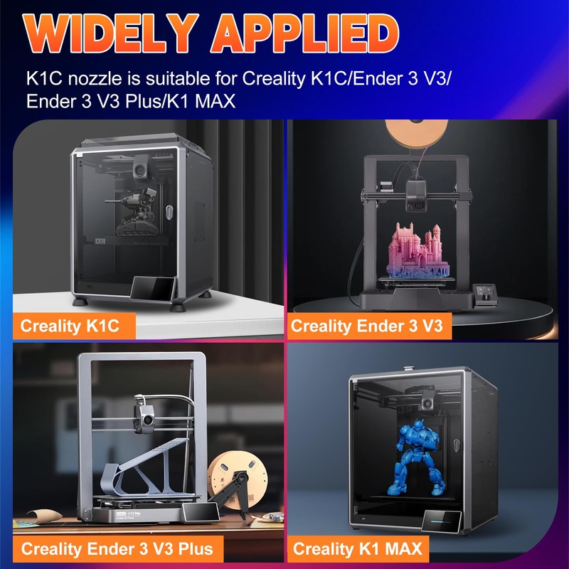 • Precise fit, wide compatibility: nozzles specially designed for Creality K1C, compatible with Ender 3 V3, Ender 3 V3 Plus and K1 Max. Exact dimensions and interfaces ensure tightness, prevent leaks and blockages. Direct installation, optimal performance and stable printing results. Ideal for 3D printer users who need reliable, durable nozzles.