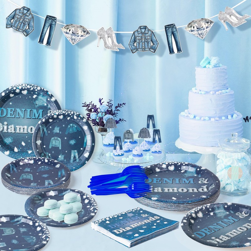 - Good Choice: This tableware not only has the jacket and jeans style elements, it also has crystal theme style patterns, which is a nice tableware for denim and diamonds party for adult.